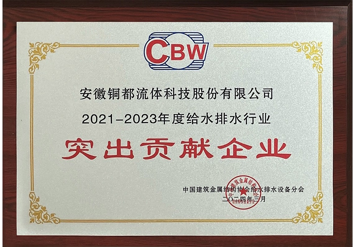 2021-2023年度給水排水行業(yè)突出貢獻(xiàn)企業(yè)