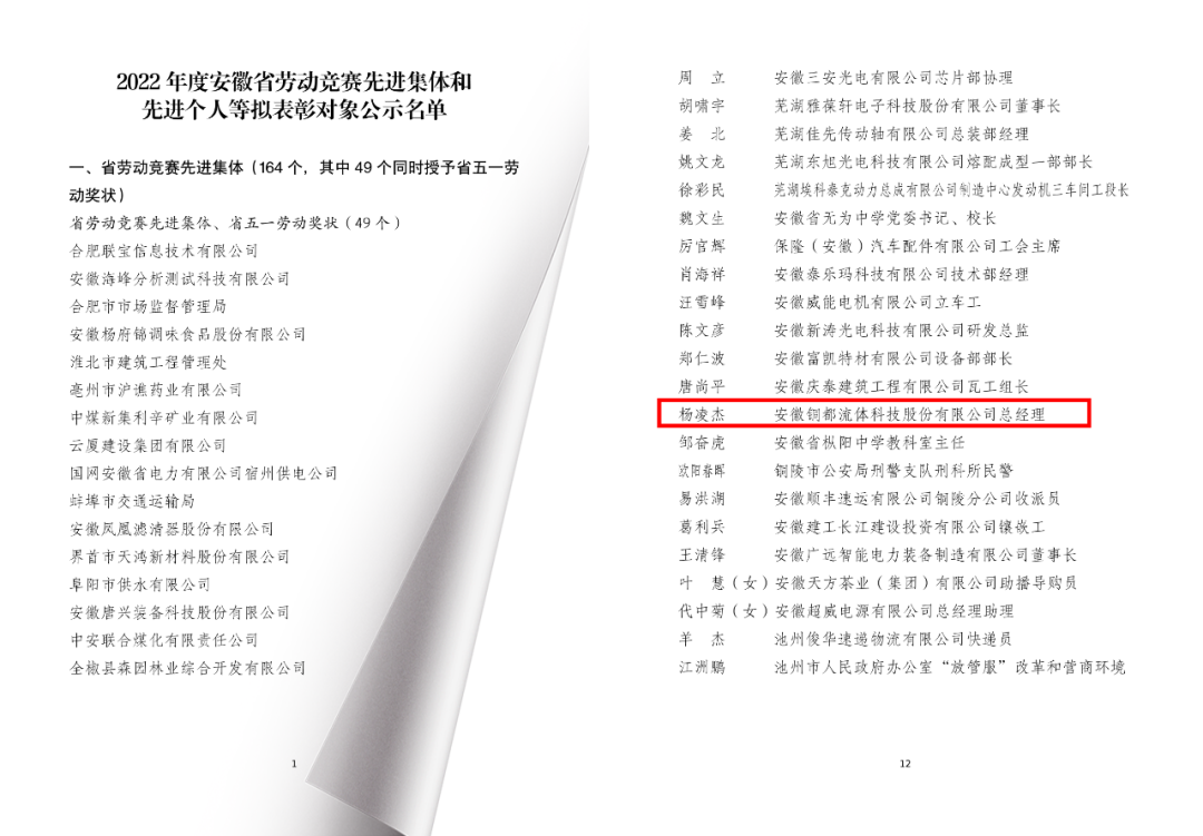銅都流體 | 黨委書記、總經(jīng)理楊凌杰榮獲“安徽省五一勞動獎章…