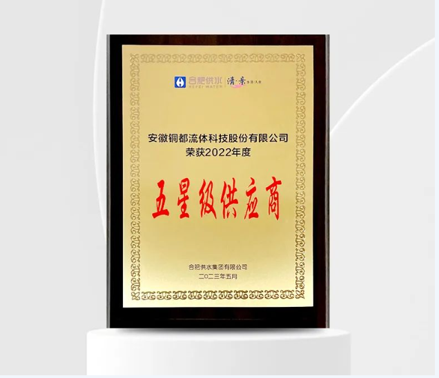 2022年度獲得合肥供水“五星級供應(yīng)商”評級的企業(yè)僅6家,此次獲獎,充分體現(xiàn)了合肥供水集團(tuán)對銅都流體綜合實力的高度認(rèn)可。