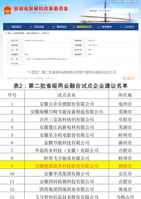 日前,安徽省發(fā)改委公示了“十四五”第二批省級(jí)先進(jìn)制造業(yè)和現(xiàn)代服務(wù)業(yè)融合試點(diǎn)名單,銅都流體成功入選“兩業(yè)融合”試點(diǎn)企業(yè)。