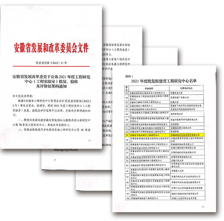 近日,安徽省發(fā)改委發(fā)布了“關(guān)于公布2021年度工程研究中心(工程實(shí)驗(yàn)室)批復(fù)、驗(yàn)收及評(píng)價(jià)結(jié)果的通知”,銅都流體成功獲批組建2021年度“安徽省中低壓閥門工程研究中心”。