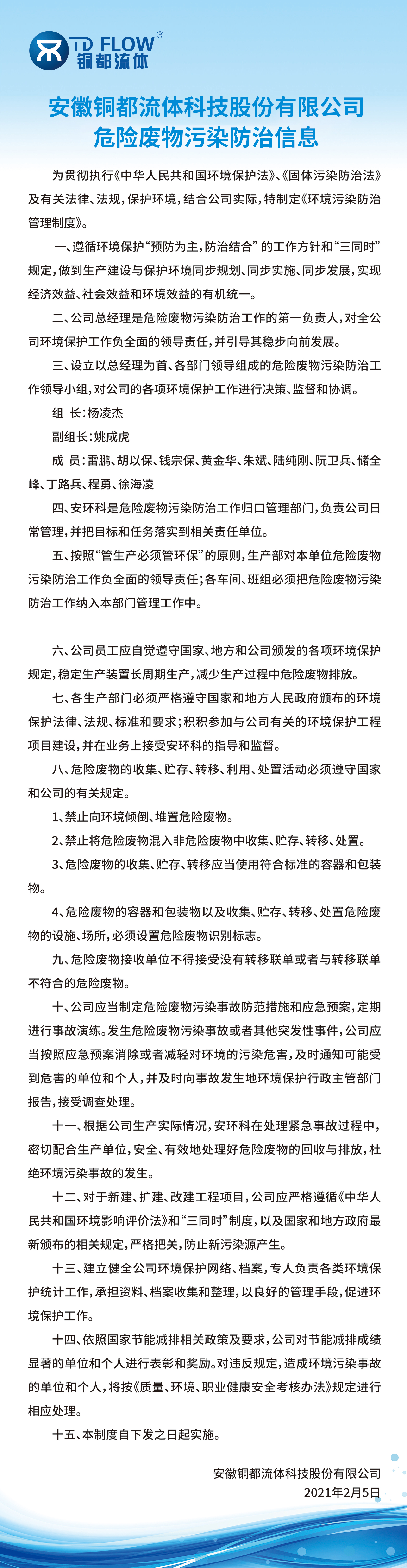 安徽銅都流體科技股份有限公司危險(xiǎn)廢物污染防治信息