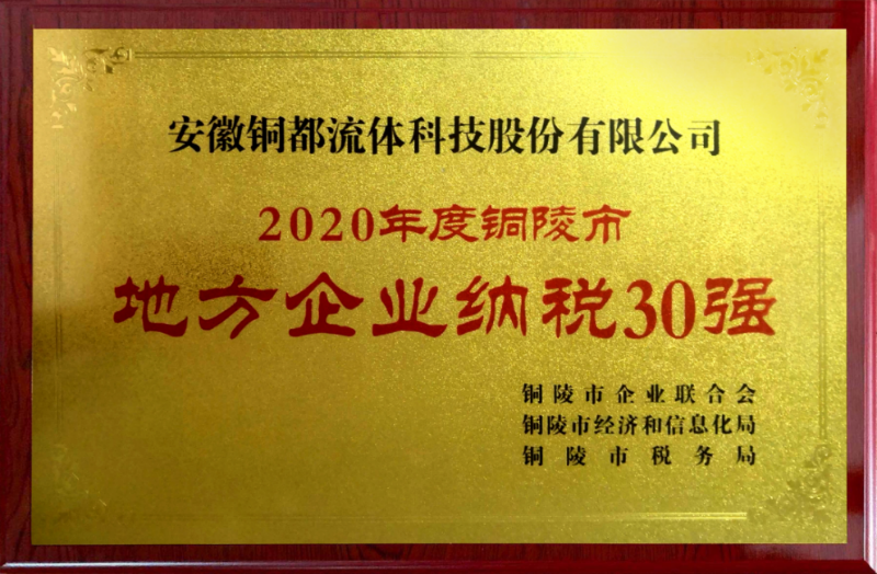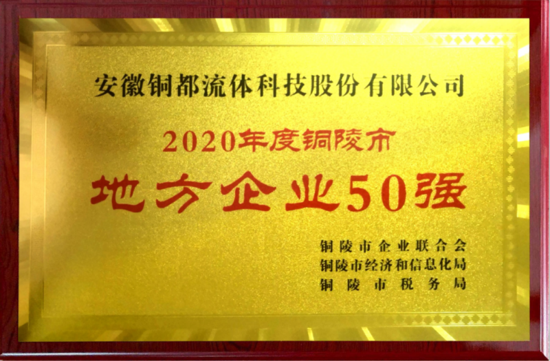 銅陵市縣(區(qū))經(jīng)信局、稅務(wù)局、縣(區(qū))企聯(lián)、開發(fā)區(qū)企業(yè)服務(wù)局開展的2020年度銅陵市“地方企業(yè)50強(qiáng)”、“納稅30強(qiáng)”評(píng)選活動(dòng)名單出爐,銅都流體榜上有名。