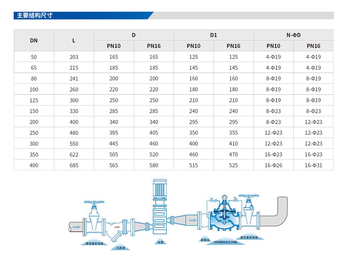 具有開啟和關(guān)閉速度調(diào)控的逆止閥,于啟動或停止抽水機運轉(zhuǎn)時,可配合現(xiàn)場調(diào)節(jié)至開啟或關(guān)閉速度。可用于高層建筑,減少水錘及水聲現(xiàn)象產(chǎn)生,以達安靜關(guān)閉之效果。 公稱壓力∶PNI0、PNI6、PN25 隔膜式∶DN50~DN500